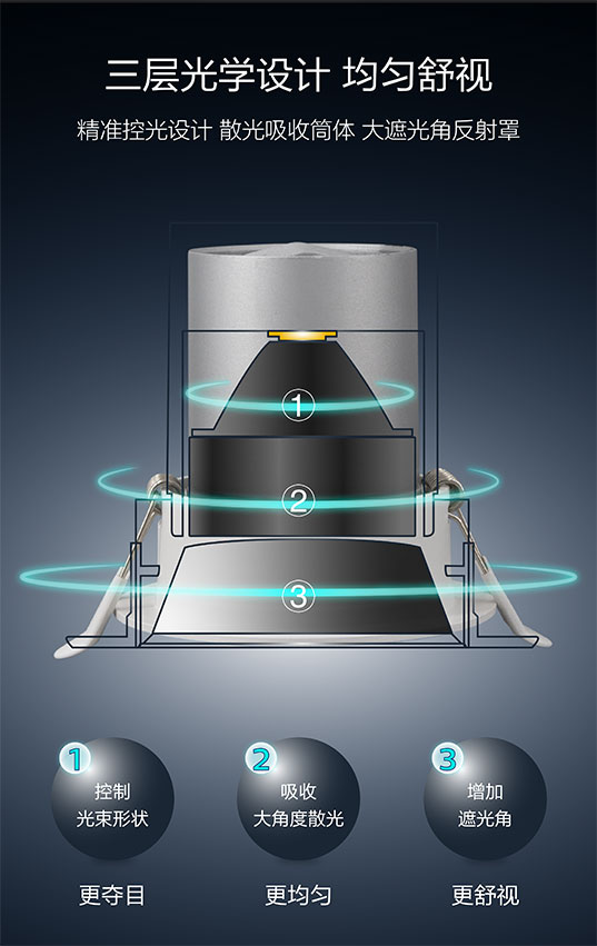 • Ultra deep embedded design, no light in sight: the tube depth is 40mm, the shading angle is 40 degrees, and the glare range is extremely narrow